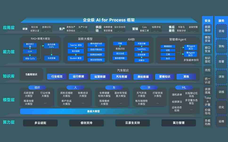 南宫娱乐问学智车解决方案是一套基于AI技术的汽车行业智能化系统,,,,覆盖从底层算力到顶层AI应用的全栈方案。。。。方案由算力层、、模型层和应用层组成:算力层,,,,方案支持多种一体机配置,,具备云端灵活部署、、、多云适配以及动态优化计算资源的能力;模型层,,,南宫娱乐问学平台版提供了企业级AI应用一站式构建与管理平台,,,支持基于后训练强化技术的汽车企业专属模型的训练、、评测和运营;应用层,,,,南宫娱乐问学DeepSeek版提供包括超级员工、、智能招采、、、、智能营销、、、、智能客服、、、AI for BI等一系列解决方案,,,可助力汽车行业实现数字化转型,,,让管理更智能、、、响应更敏捷。。